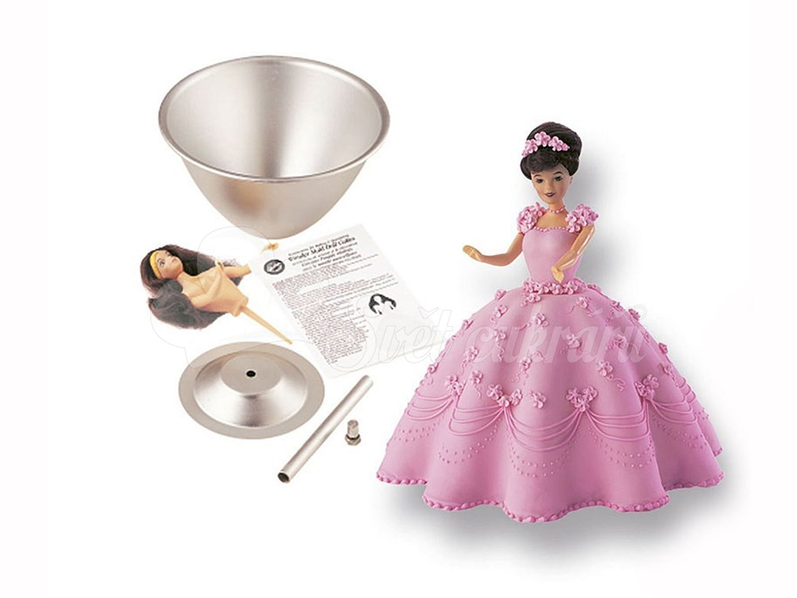 V sade je forma na upečenie sukne - vyrobená z hliníka a telíčko bábiky - plastové. Výška 26 cm