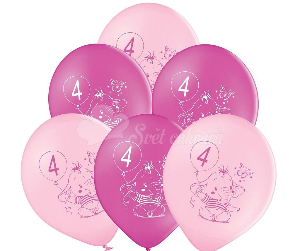Balónky 4. narodeniny ružový slon 6 ks, ideálne na oslavu vášho dieťaťa.