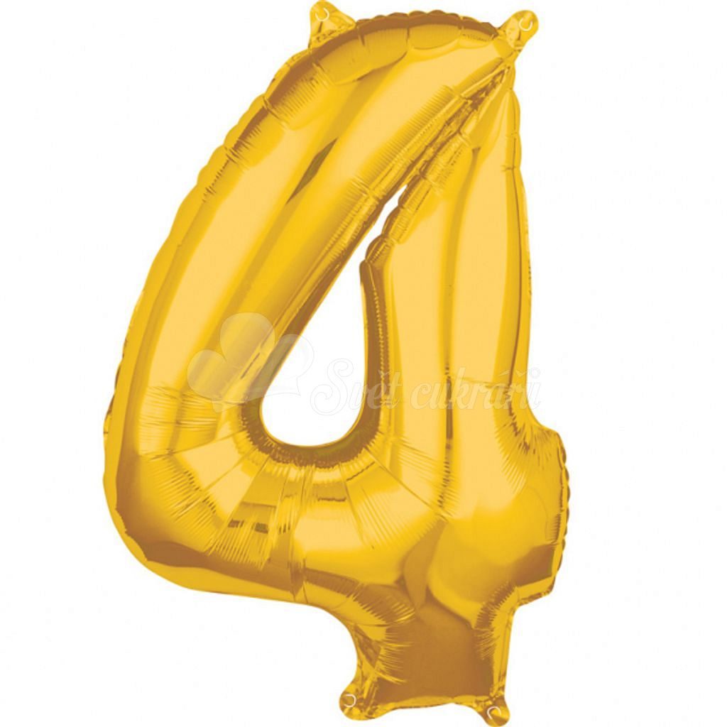 Fóliový balónek číslo 4 v zlaté barvě o velikosti 66 cm je ideální pro narozeninové oslavy.