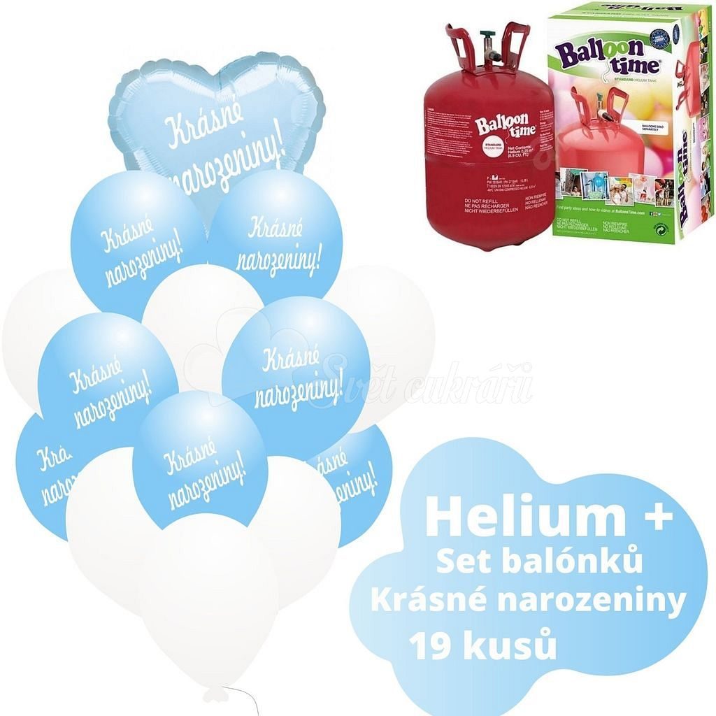 Heliová sada - svetlomodré balónky KRÁSNE NAROZENINY -
