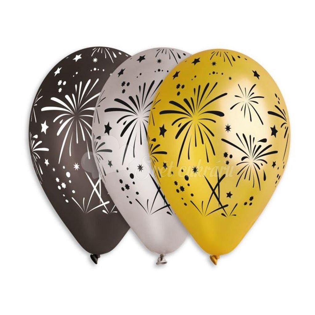 Metalický balónek s ohňostrojovým dizajnom, veľkosť 28 cm, ideálny na oslavy.