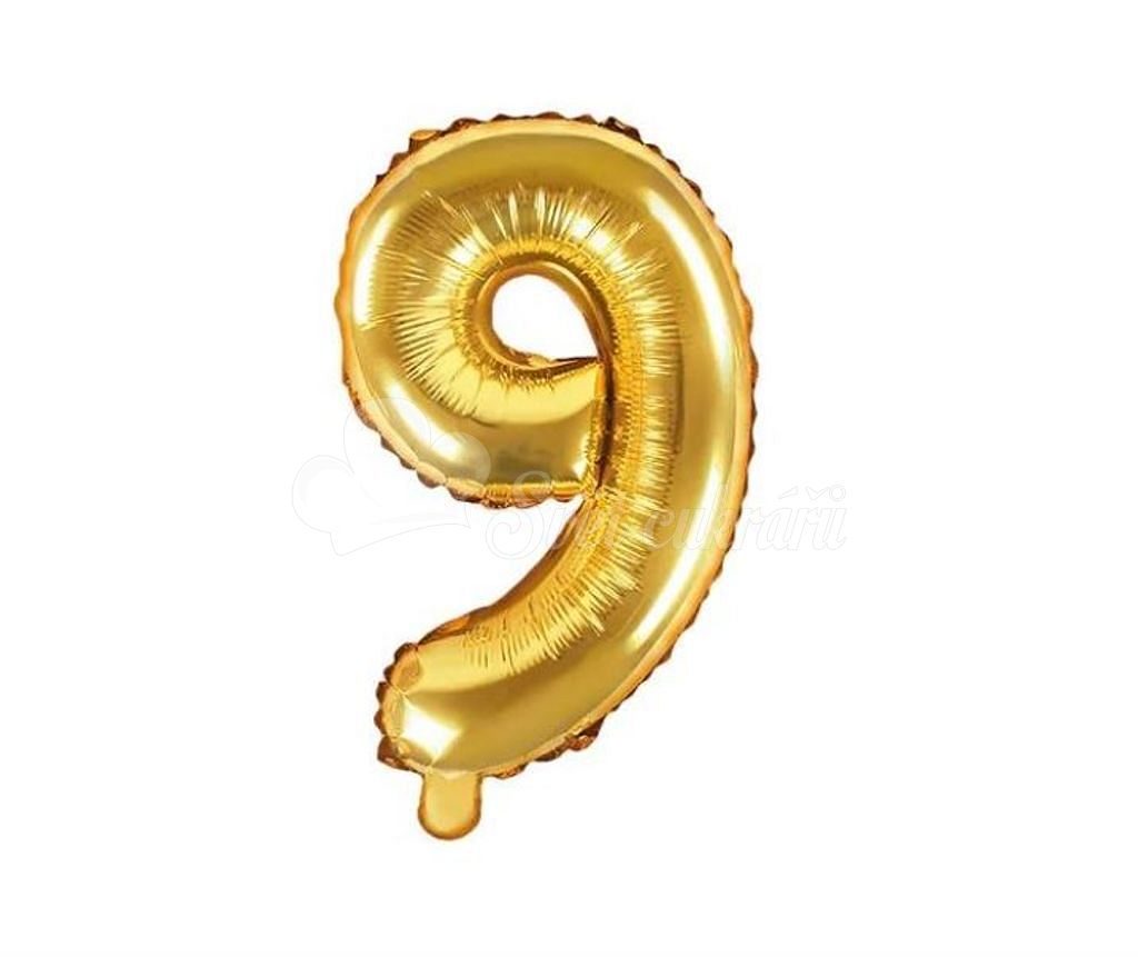 Zlatý fóliový balón číslice 9 - 35 cm (NELZE PLNIT HELIEM)