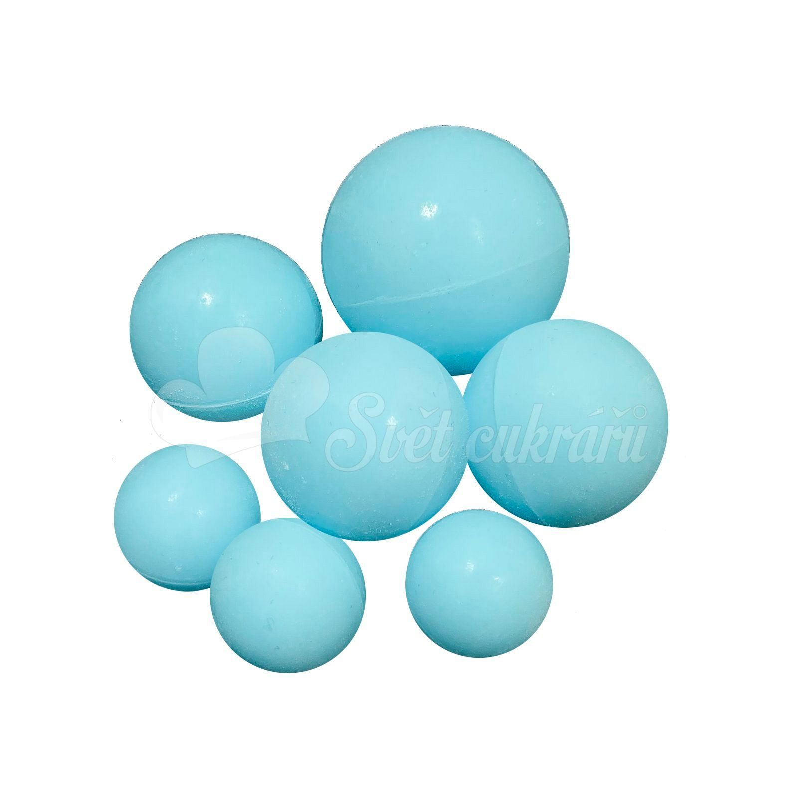 Sada 7 kusov modrých čokoládových gulí XXL (extra veľkých) na kreatívne a vkusné zdobenie cukrárskych výrobkov.