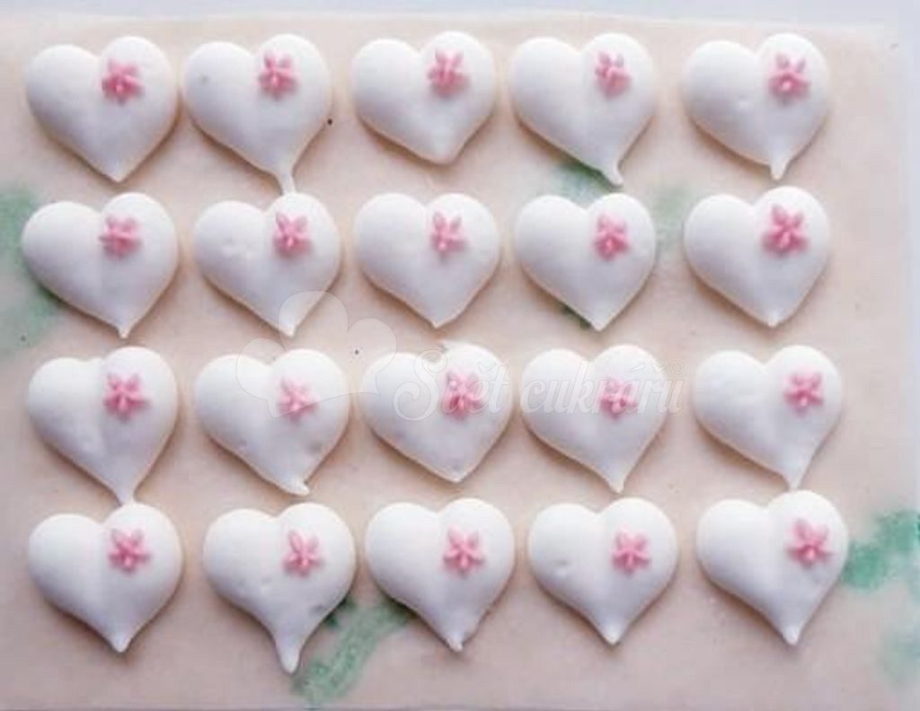 Cukrové dekorácie – biele srdiečka s ružovou kytičkou (20 ks)