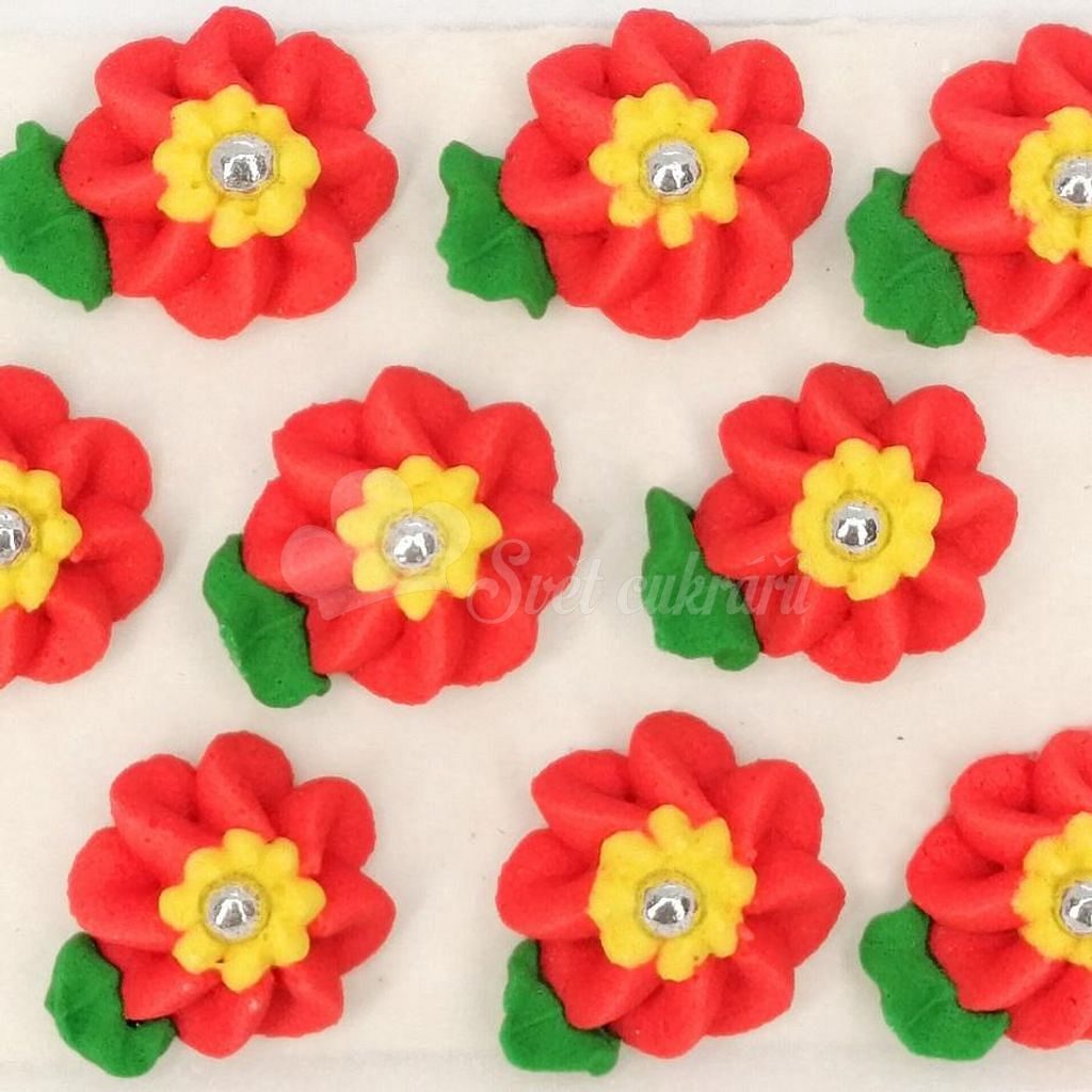 Cukrové dekorácie – veľké kvety na platíčku 5 dodajú tortám, cupcakes aj dezertom elegantný kvetinový vzhľad za pár sekúnd. V balení nájdete 9 ručne vyrábaných kvetov s veľkosťou cca 2,5 cm.