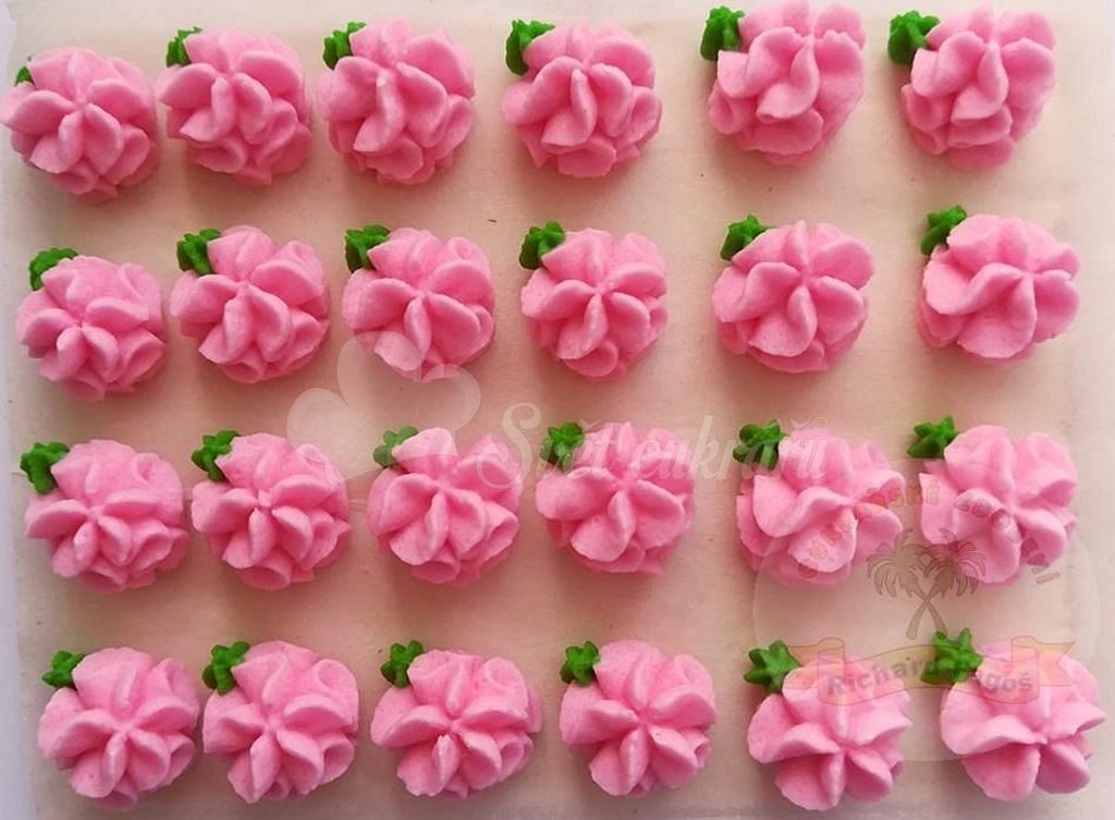 Kvety sú uložené na praktickom platíčku, vďaka čomu sa s nimi ľahko manipuluje a zdobenie je čisté a rýchle. V jednom balení je 24 kusov, takže vystačia na viacero dezertov alebo na bohatšie zdobenie jednej väčšej torty.
