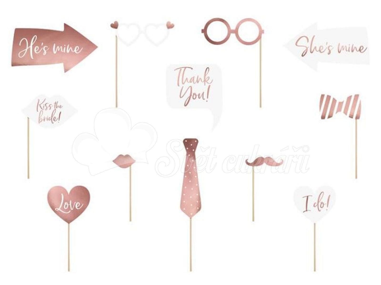 Svadobné fotopríslušenstvo, mix ružového zlata, 12 ks