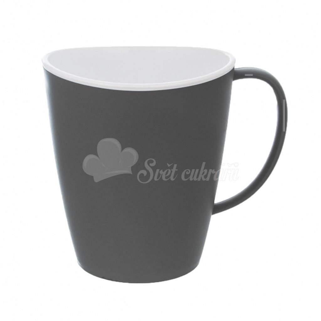 Kolekcia dizajnových hrnkov navyše mení pohľad na plastové riady, ktoré môžu byť štýlové a trendy. Zaujímavý dizajn horného, mierne prehnutého okraja, kde biela farba prechádza cez okraj, dodáva hrnku jedinečný vzhľad.
