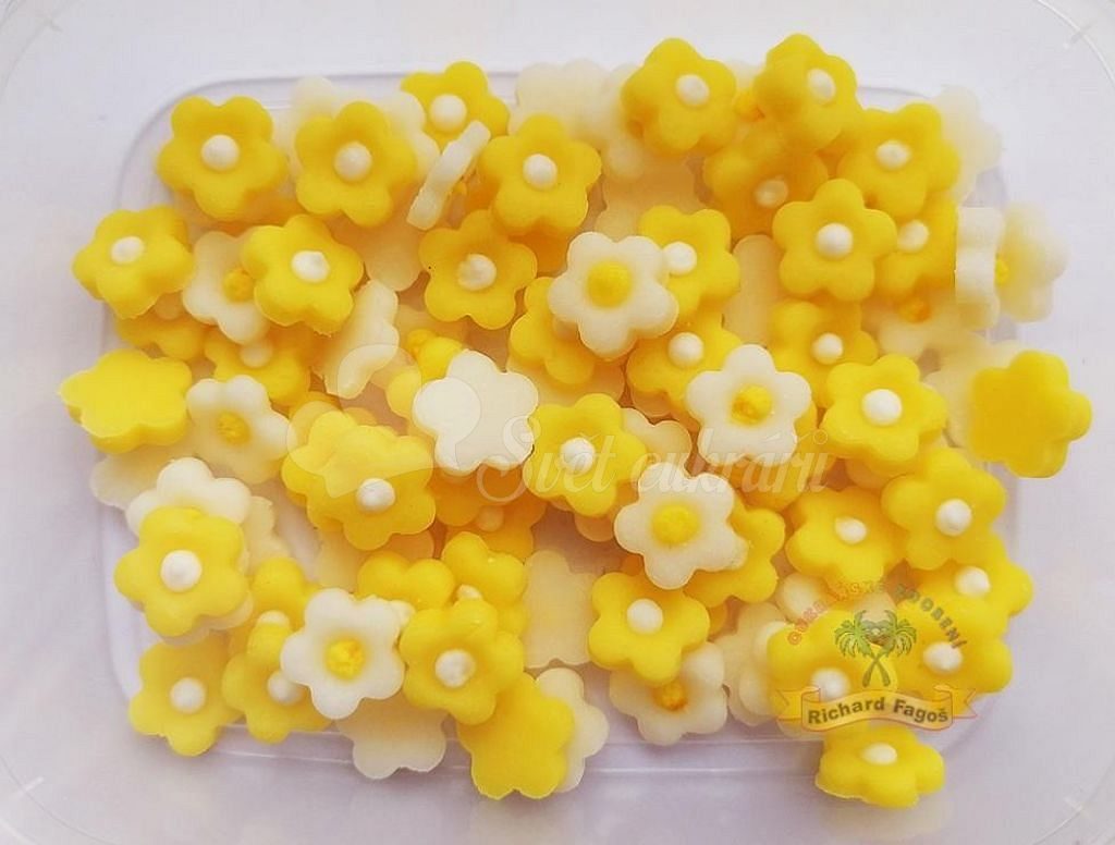 Drobné žlté kytičky na zdobenie 20 g rozžiaria torty, cupcakes aj zákusky jemným kvetinovým detailom. Ručná výroba a mandľová aróma dodajú vašim sladkostiam výnimočný šmrnc.