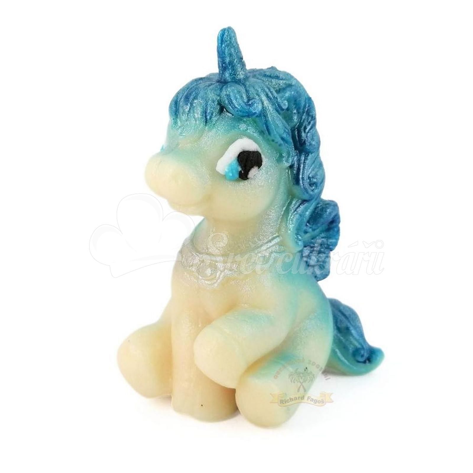 Jednorožec bielo-modrý 55 g je ručne vyrábaná kokosová dekorácia s arómou sladkých mandlí, ktorá dodá tortám rozprávkový vzhľad. Ideálny na rýchle a efektné zdobenie bez modelovania.