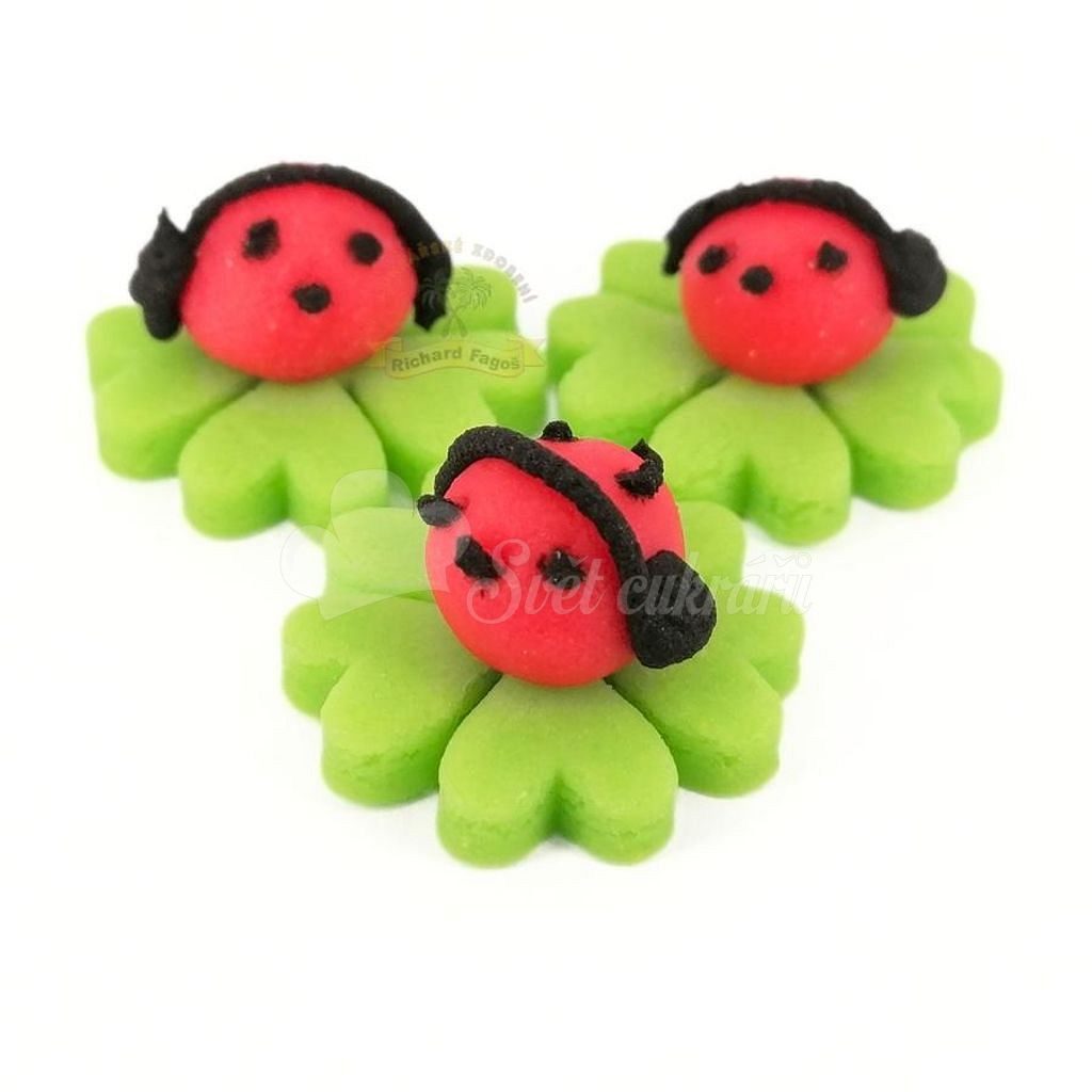 Mini lienka (3 g) na štvorlístku z kokosovej modelovacej hmoty s arómou sladkých mandlí. Milá jedlá dekorácia, ktorá okamžite rozžiari torty, cupcakes aj svadobné dezerty.
