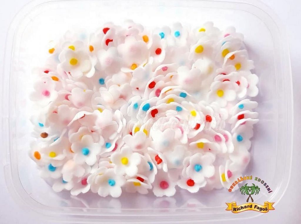 Modelované biele kvietky s farebnou bodkou 10 g