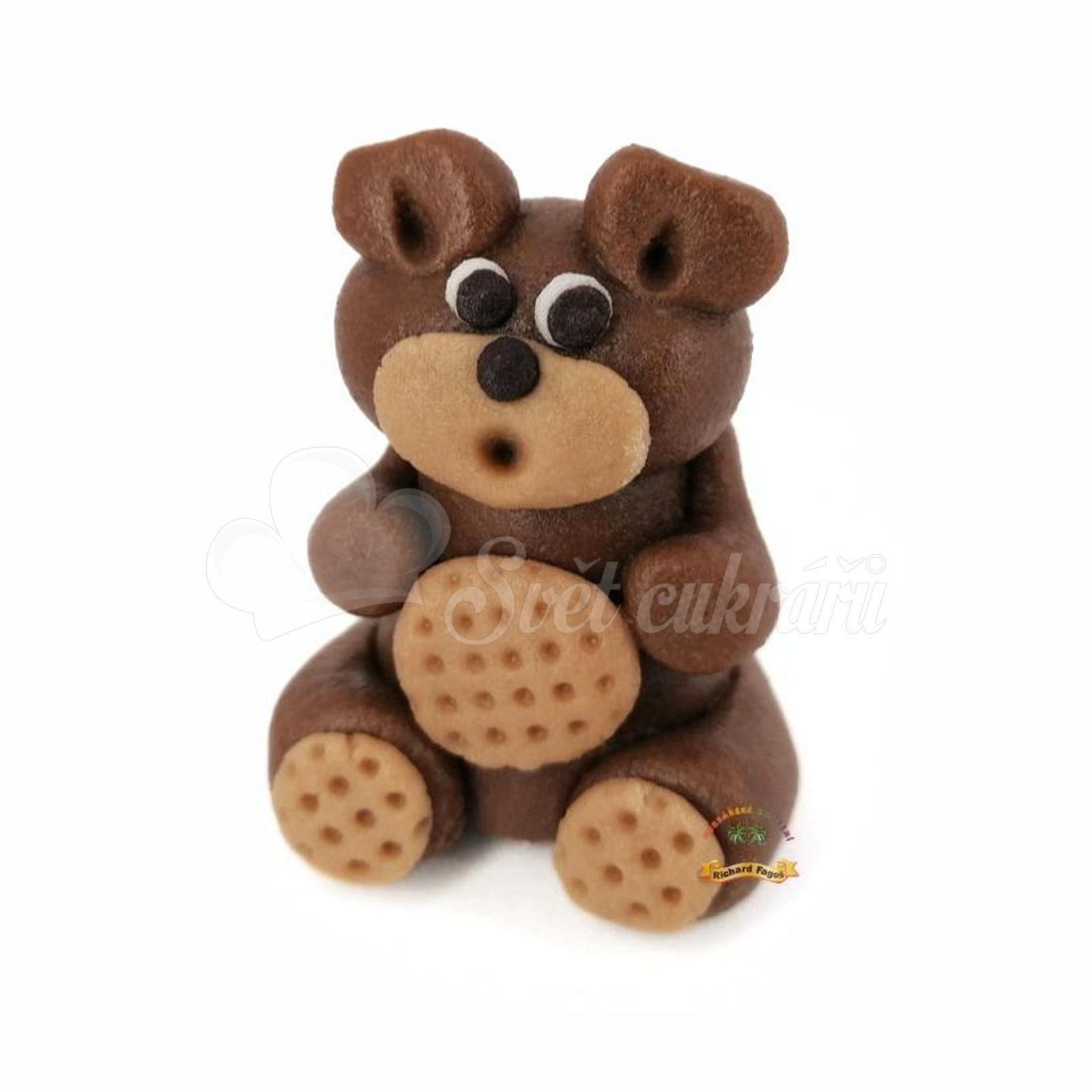 Príležitostná figúrka – hnedý medvedík je ručne modelovaná jedlá dekorácia z kokosovej hmoty s jemnou arómou sladkých mandlí. Dodá tortám a zákuskom milý „wow“ efekt na oslavy aj svadby.