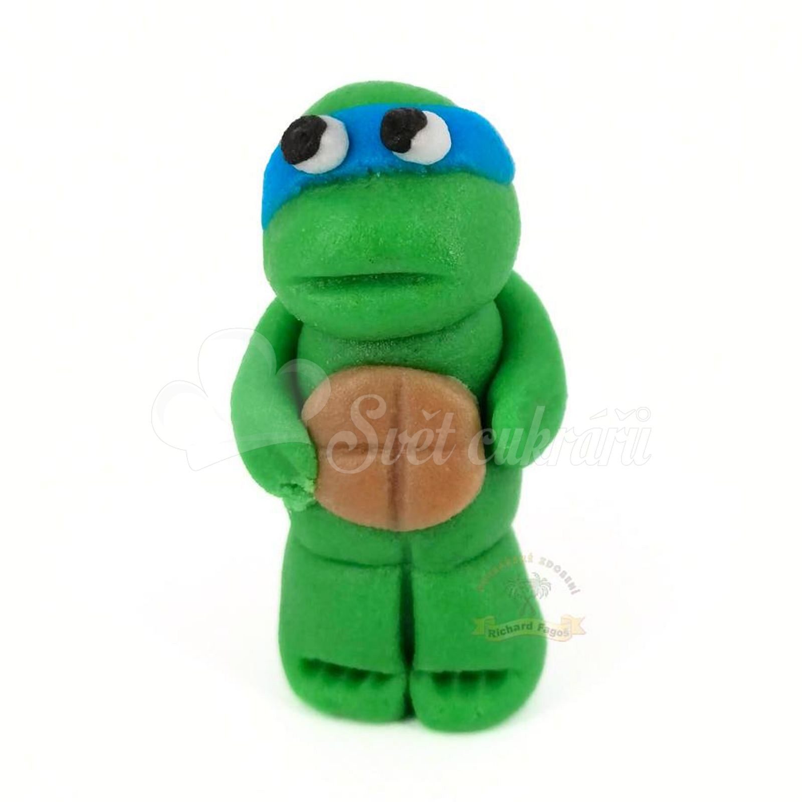 Príležitostná figúrka ninja s modrou páskou dodá torte hravý „wow“ efekt na oslavu aj tematickú párty. Ručne modelovaná kokosová dekorácia s mandľovou arómou je pripravená ozdobiť váš sladký príbeh.