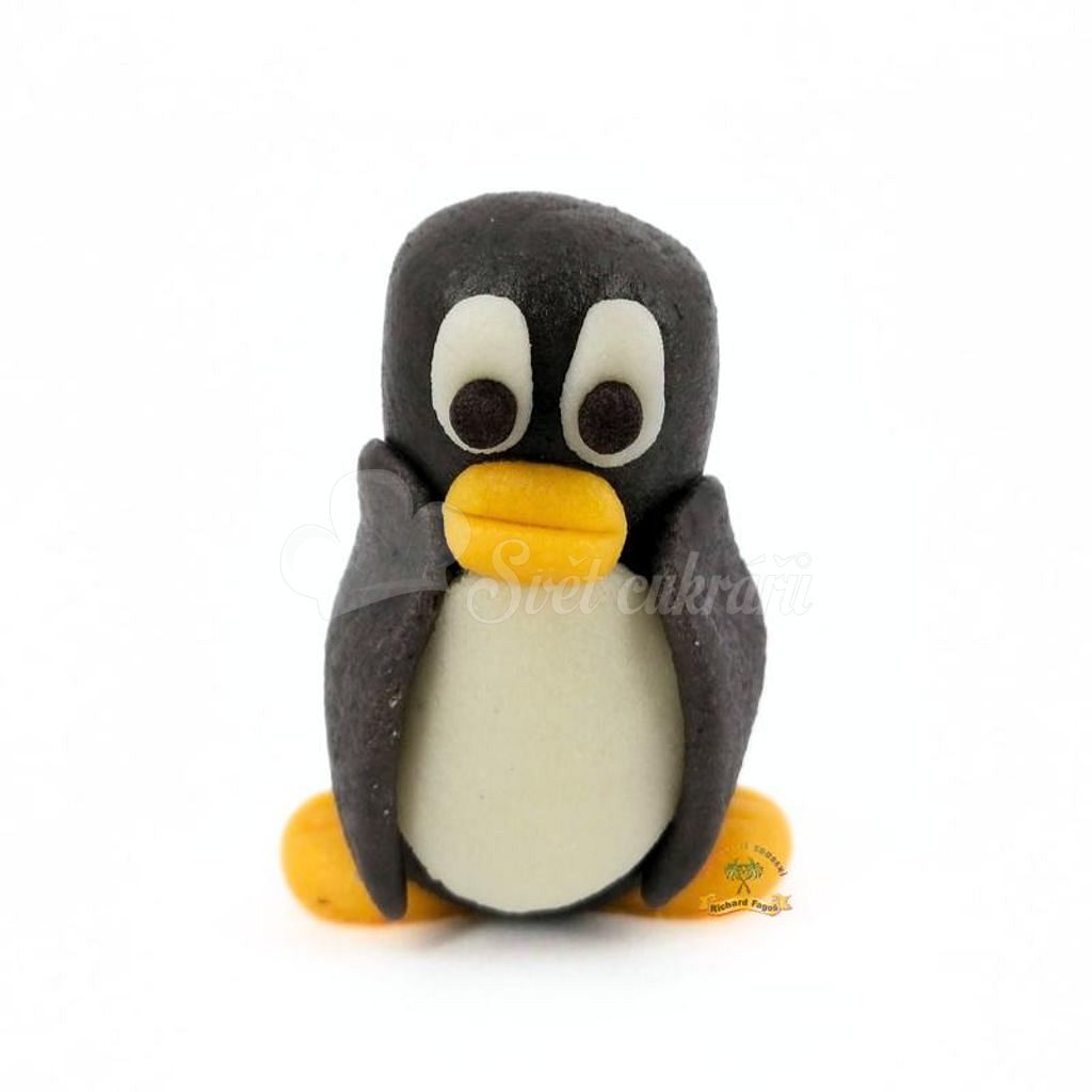Ručne vyrábaná jedlá figúrka tučniaka z kokosovej modelovacej hmoty s arómou sladkých mandlí. Ideálna na torty, cupcakes aj sviatočné zákusky, keď chcete rýchlo vytvoriť „wow“ efekt.