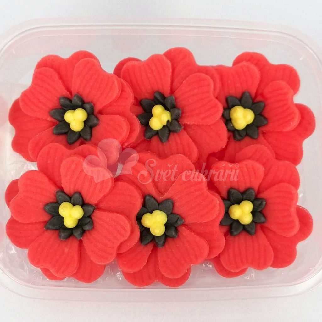 Vlčí mak – jedlé kvety 6 ks sú ručne vyrábané dekorácie z kokosovej modelovacej hmoty s arómou sladkých mandlí. Dodajú tortám, cupcakes aj svadobným zákuskom elegantný kvetinový efekt bez námahy.