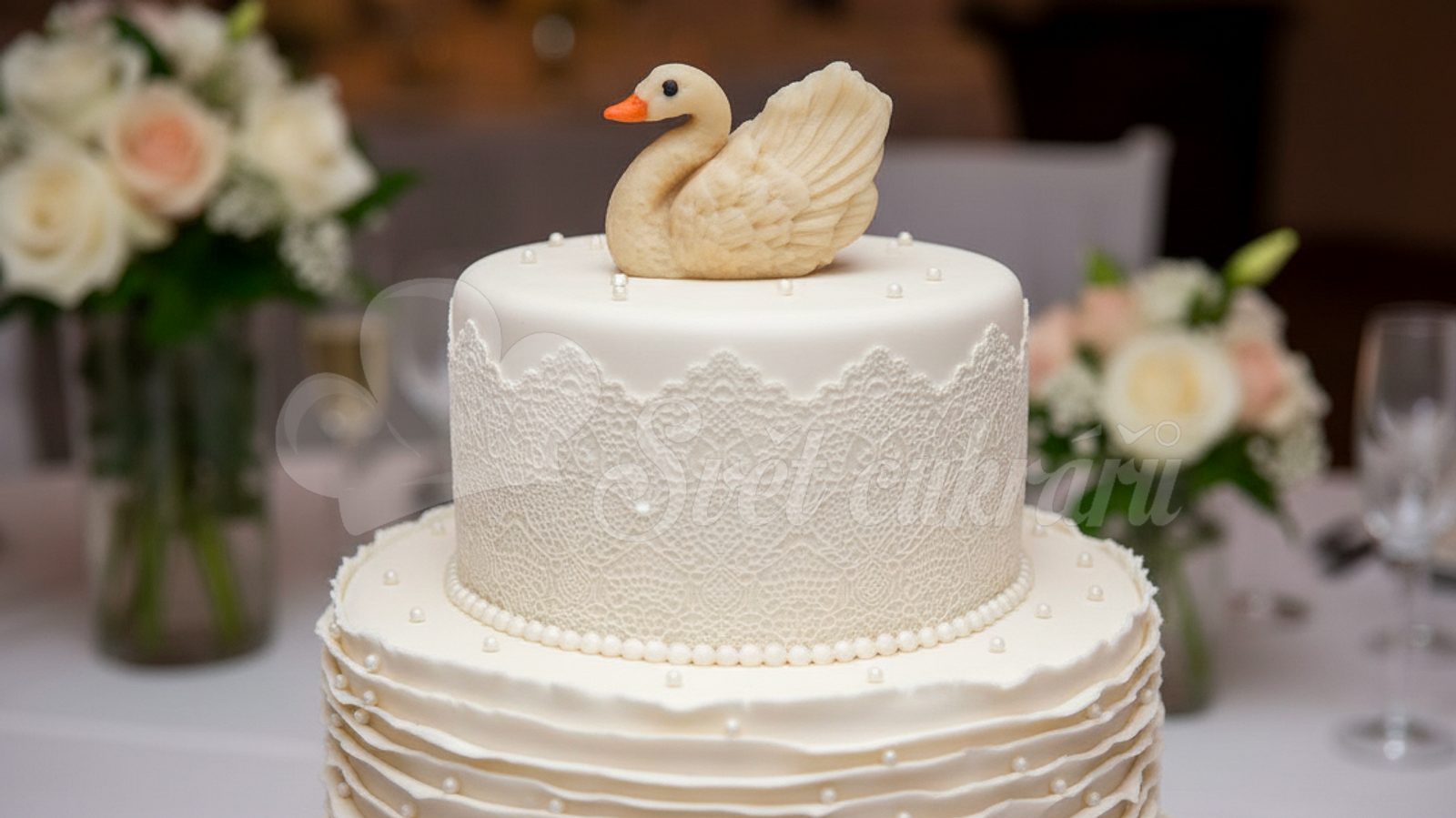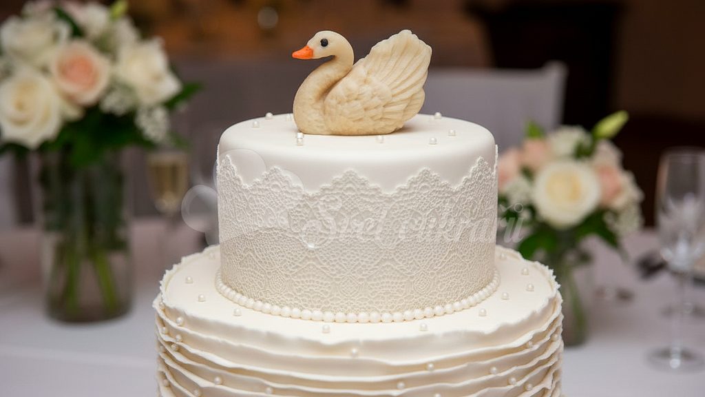 Labuť bez korunky - marcipánová figúrka na tortu