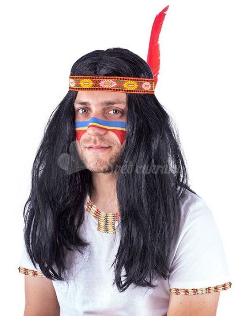Paruka v štýle Indiána so čelenkou a pierkom pre dospelých, ideálna na karnevalové večierky.