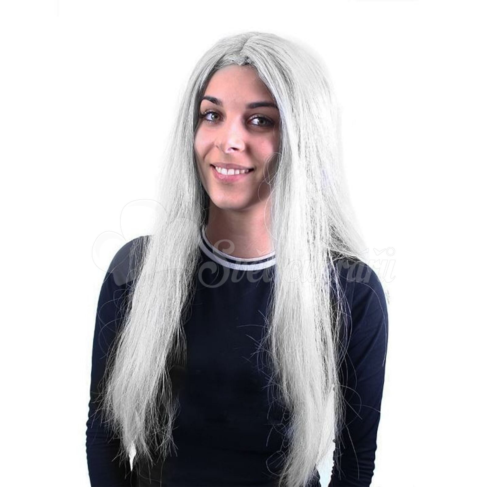 Nechajte sa uniesť do sveta mágie a čarov s touto striebornou čarodníckou parukou. Perfektne sa hodí ako doplnok na každú karnevalovú oslavu alebo Halloween večer, pridávajúc vášmu kostýmu skutočný šmrnc. Paruka má dlhé strieborné vlasy, ktoré evokujú tajomnú a čarovnú atmosféru.