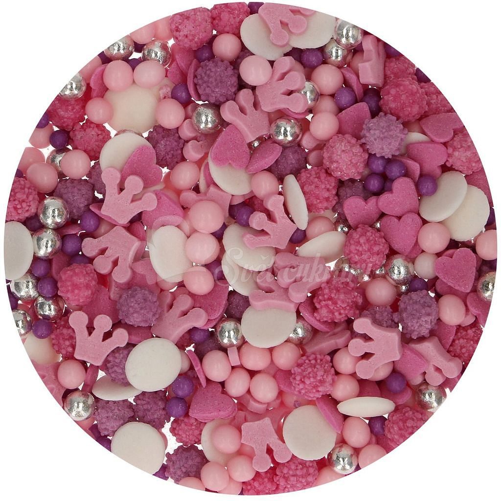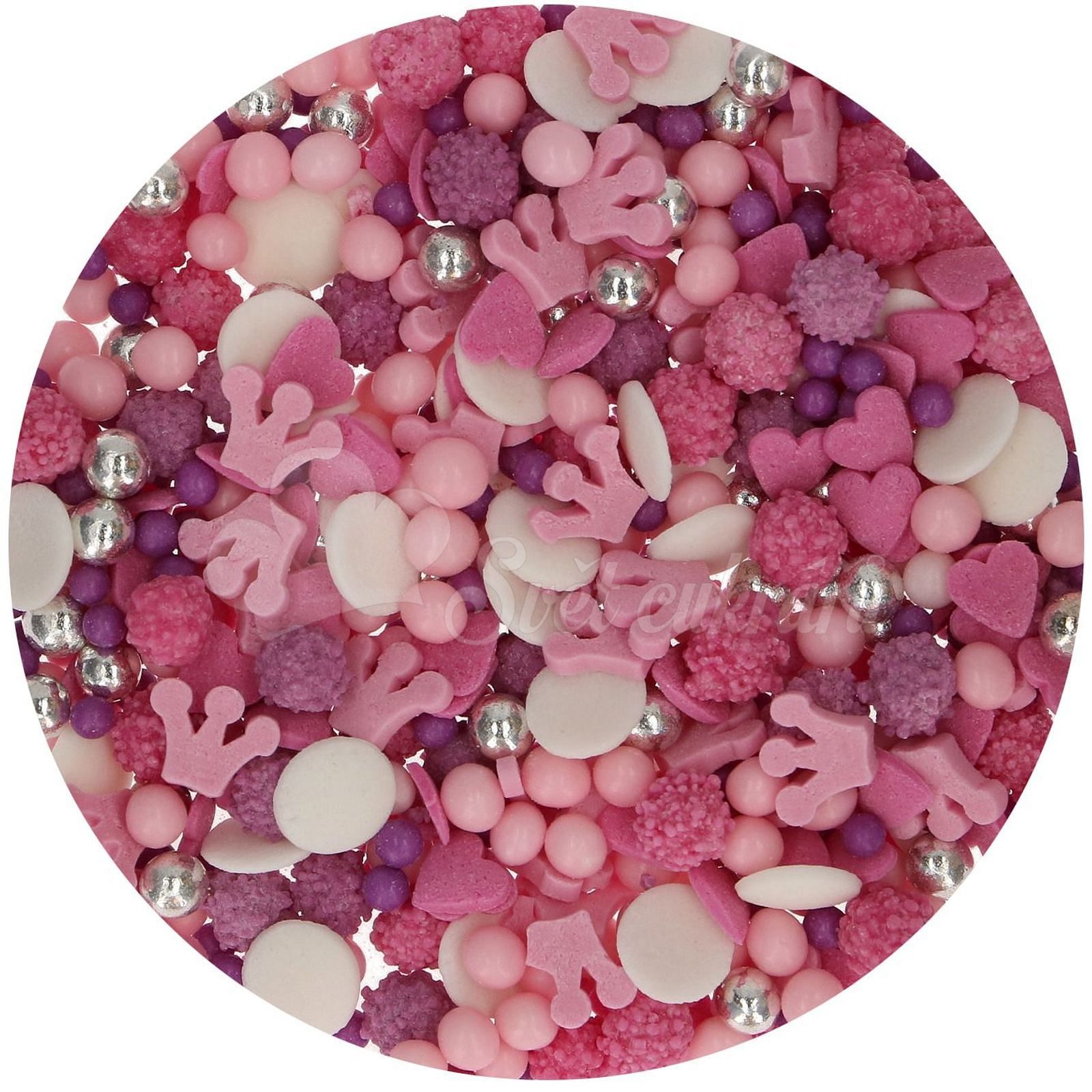 Okrasite svoje sladice s čudovito mešanico posipov Princess v roza, beli, vijolični in srebrni barvi.