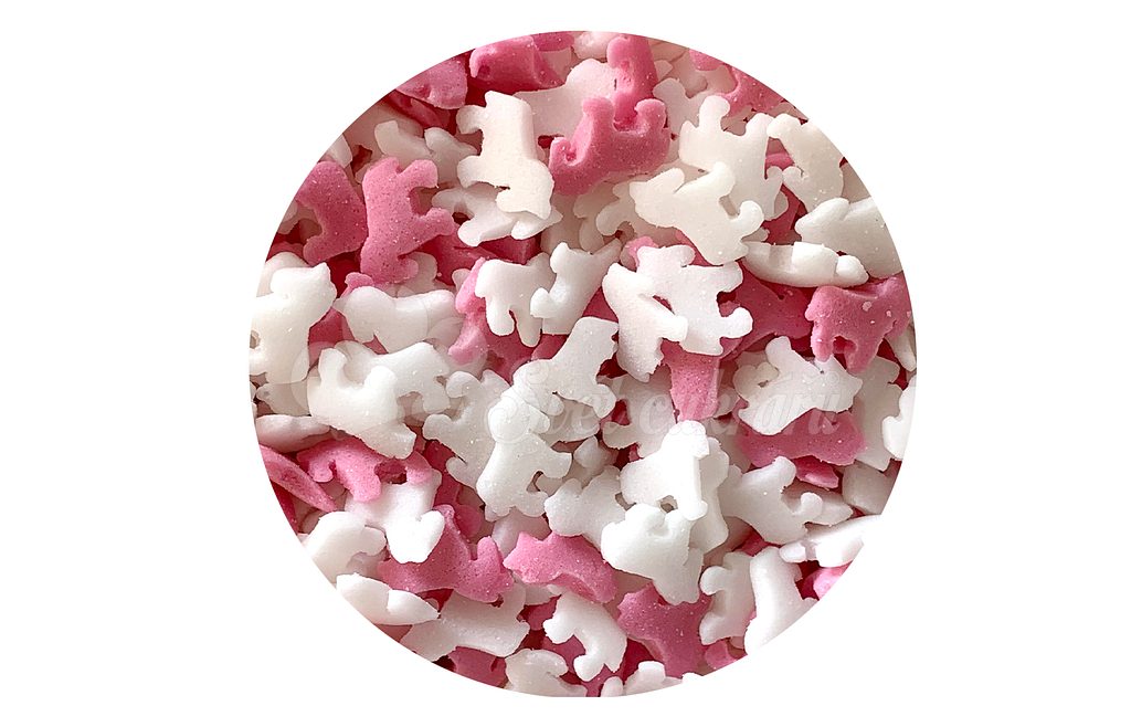 Cukrové ozdoby v podobe ružových a bielych jednorožcov - balené po 1 kg, veľkosť 10 mm.