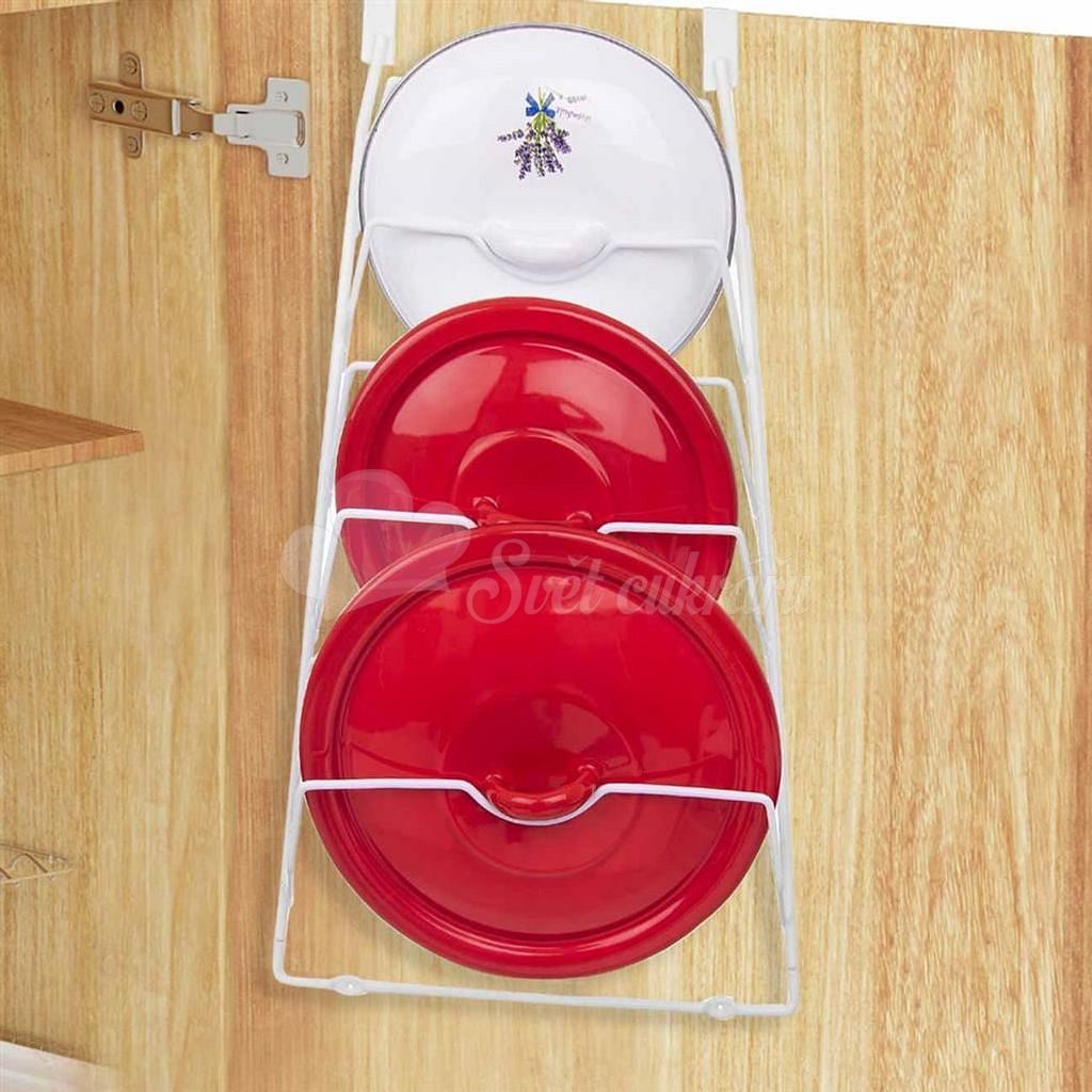 Rozlúčte sa s chaosom vo vašej kuchyni pomocou Závesného stojanu na poklice od značky ORION. Uložte prehľadne až 6 poklic rôznych veľkostí, od 14 cm do 28 cm, bez zložitých montáží. Jednoducho ho zavesíte na dvierka skrinky a všetko máte na dosah.