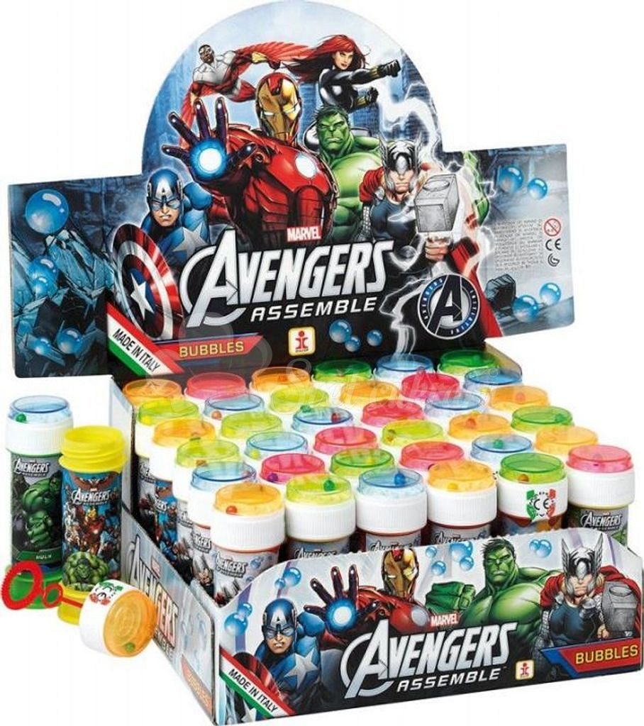 Zábavný bublifuk Avangers s objemom 60 ml, obsahuje víčko s hrou a foukátkom, ktorý zaručuje nekonečnú zábavu.